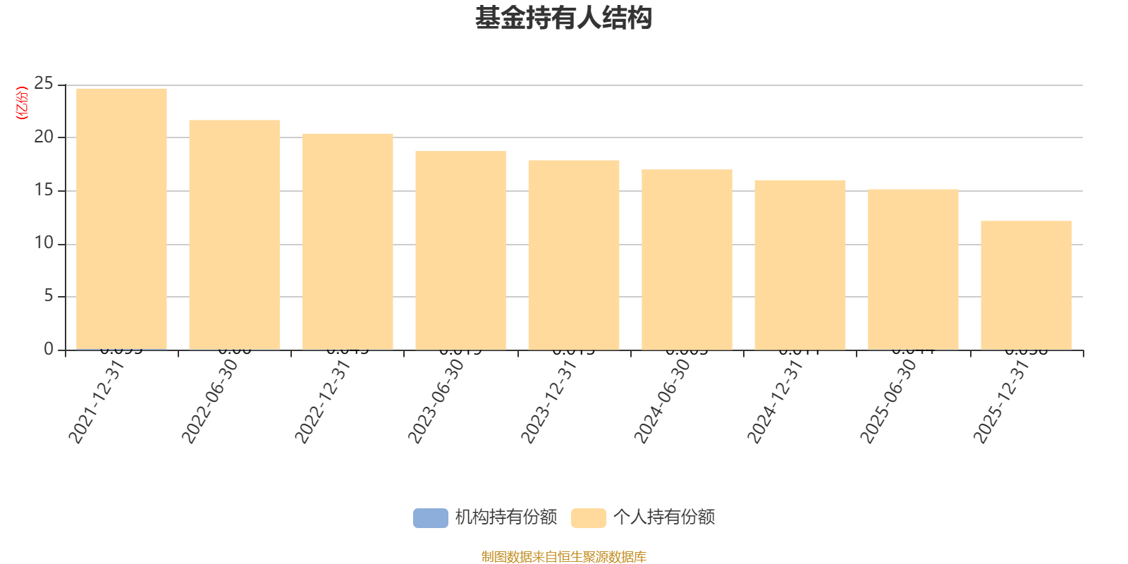截至2025年12月31日,基金持有人共计11.15万户,合计持有12.17亿份。其中管理人员工持有47.3万份,占比0.04%,机构持有份额占比0.32%,个人投资者占比99.68%。