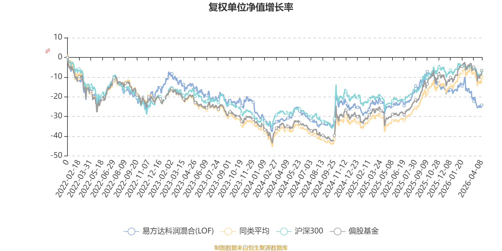 截至4月8日,易方达科润混合(LOF)近三个月复权单位净值增长率为-10.53%,位于同类可比基金176/185;近半年复权单位净值增长率为-18.24%,位于同类可比基金180/185;近一年复权单位净值增长率为4.40%,位于同类可比基金180/185;近三年复权单位净值增长率为-12.59%,位于同类可比基金163/177。