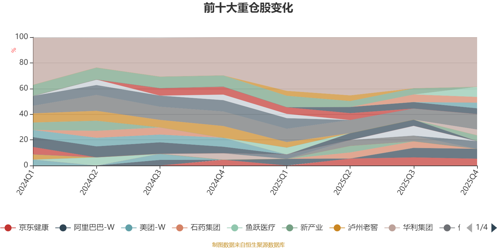 该基金持股集中度较高。截至2025年末,基金十大重仓股分别是腾讯控股、紫金矿业、阿里巴巴-W、宁德时代、京东健康、翰森制药、中国海洋石油、山东黄金、三棵树、恒瑞医药。