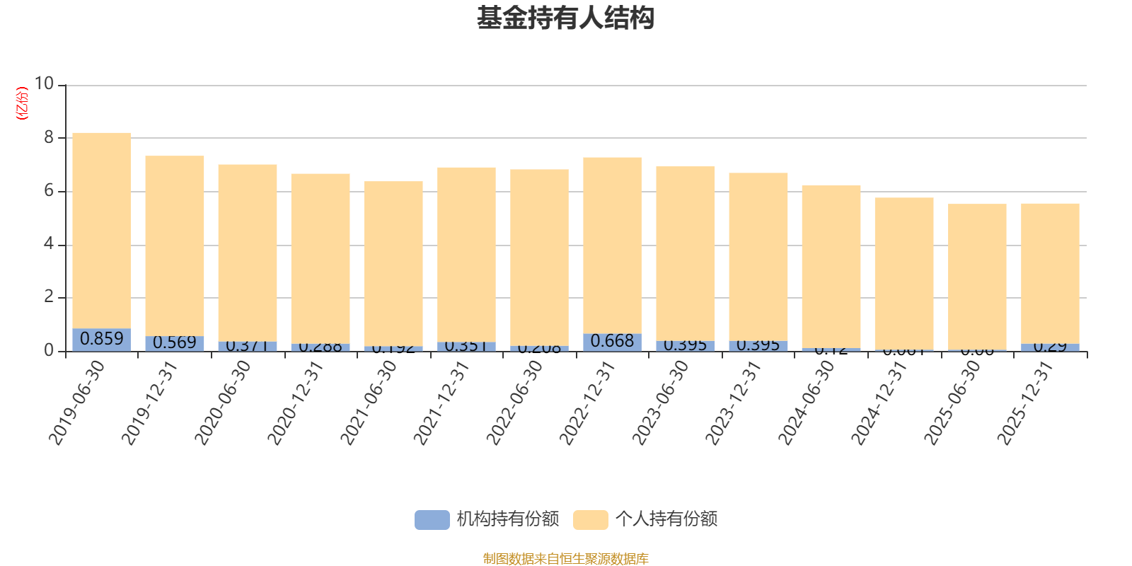 截至2025年12月31日,基金持有人共计6.31万户,合计持有5.54亿份。其中管理人员工持有24.21万份,占比0.04%,机构持有份额占比5.23%,个人投资者占比94.77%。