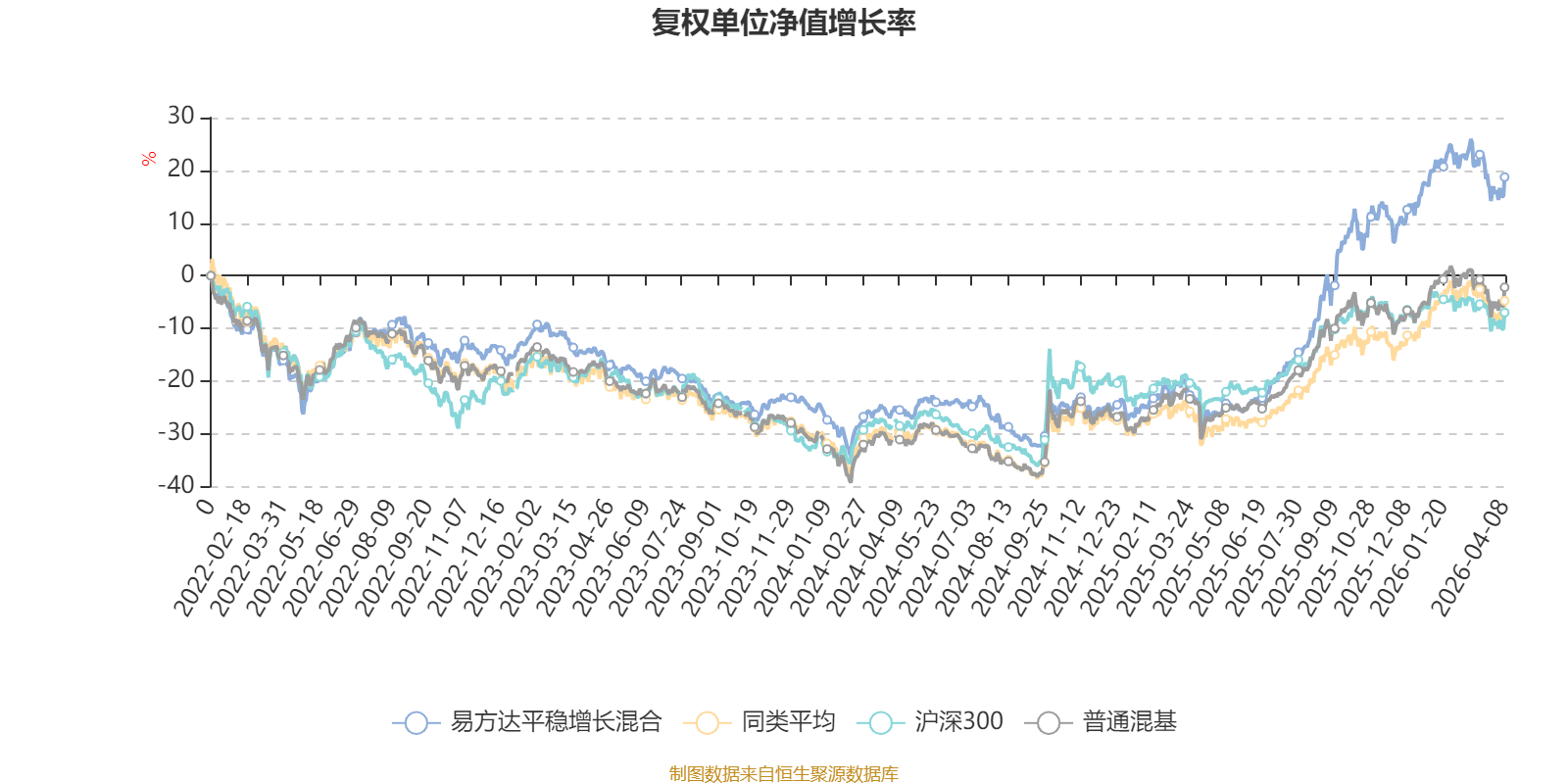 截至4月8日,易方达平稳增长混合近三个月复权单位净值增长率为-0.91%,位于同类可比基金79/134;近半年复权单位净值增长率为7.32%,位于同类可比基金41/134;近一年复权单位净值增长率为66.22%,位于同类可比基金16/134;近三年复权单位净值增长率为37.77%,位于同类可比基金19/126。