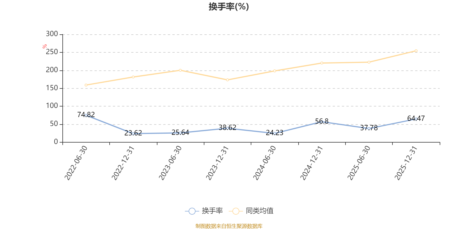 截至2025年12月31日,基金最近一年换手率约106.18%,持续低于同类均值。