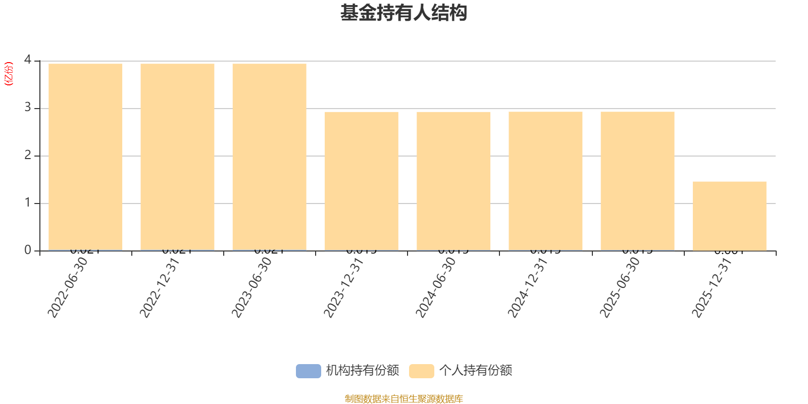 截至2025年12月31日,基金持有人共计3.25万户,合计持有1.45亿份。其中管理人员工持有2.83万份,占比0.02%,机构持有份额占比0.04%,个人投资者占比99.96%。