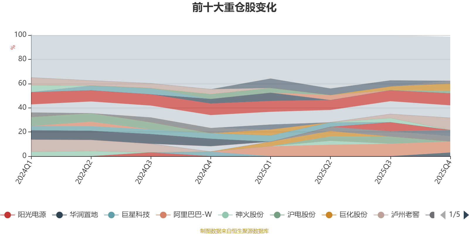 该基金持股集中度较高。截至2025年末,基金十大重仓股分别是腾讯控股、新易盛、贵州茅台、阿里巴巴-W、中际旭创、东山精密、宁德时代、华润置地、紫金矿业、立讯精密。