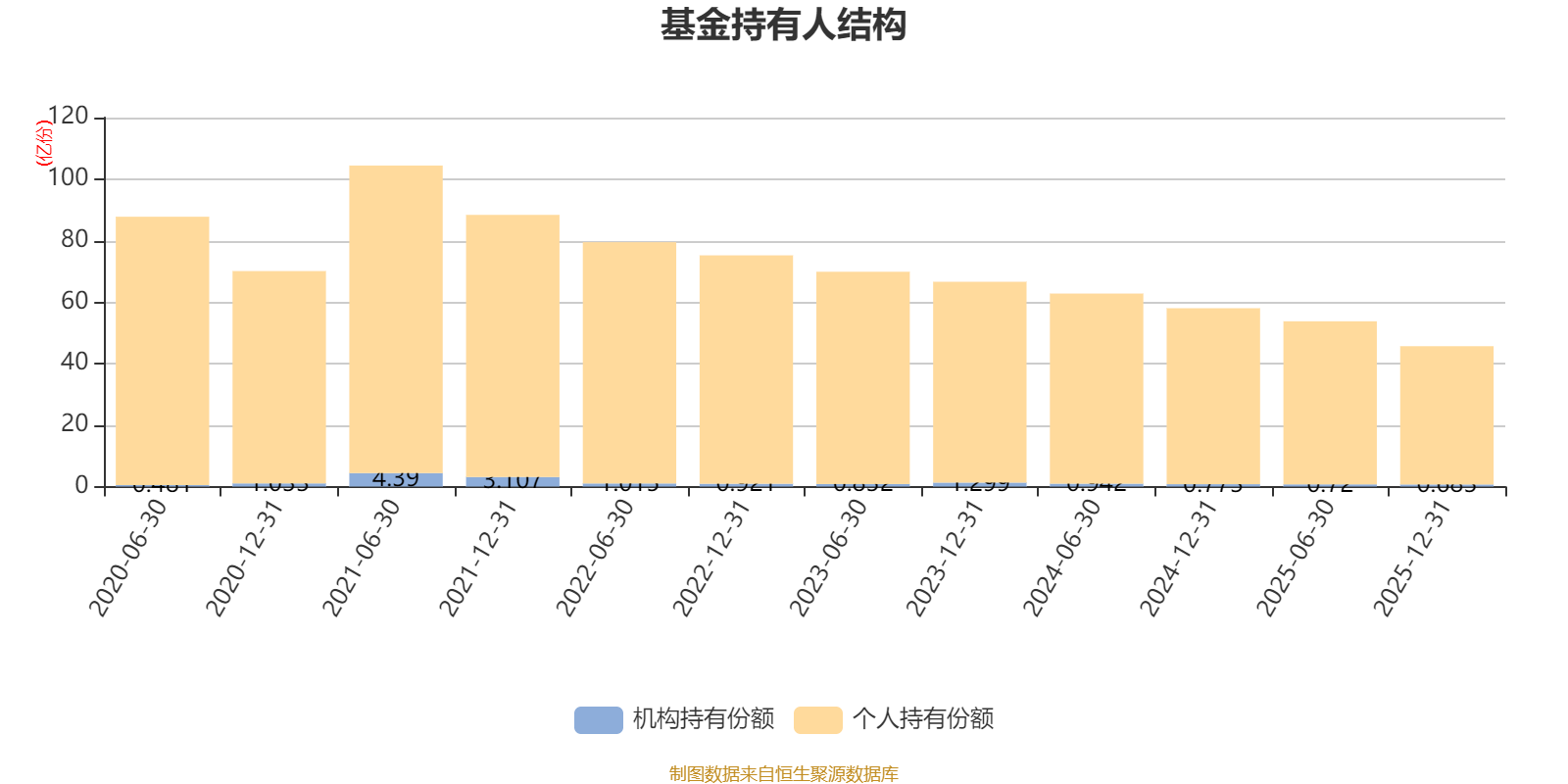 截至2025年12月31日,基金持有人共计17.2万户,合计持有45.66亿份。其中管理人员工持有977.43万份,占比0.21%,机构持有份额占比1.50%,个人投资者占比98.50%。