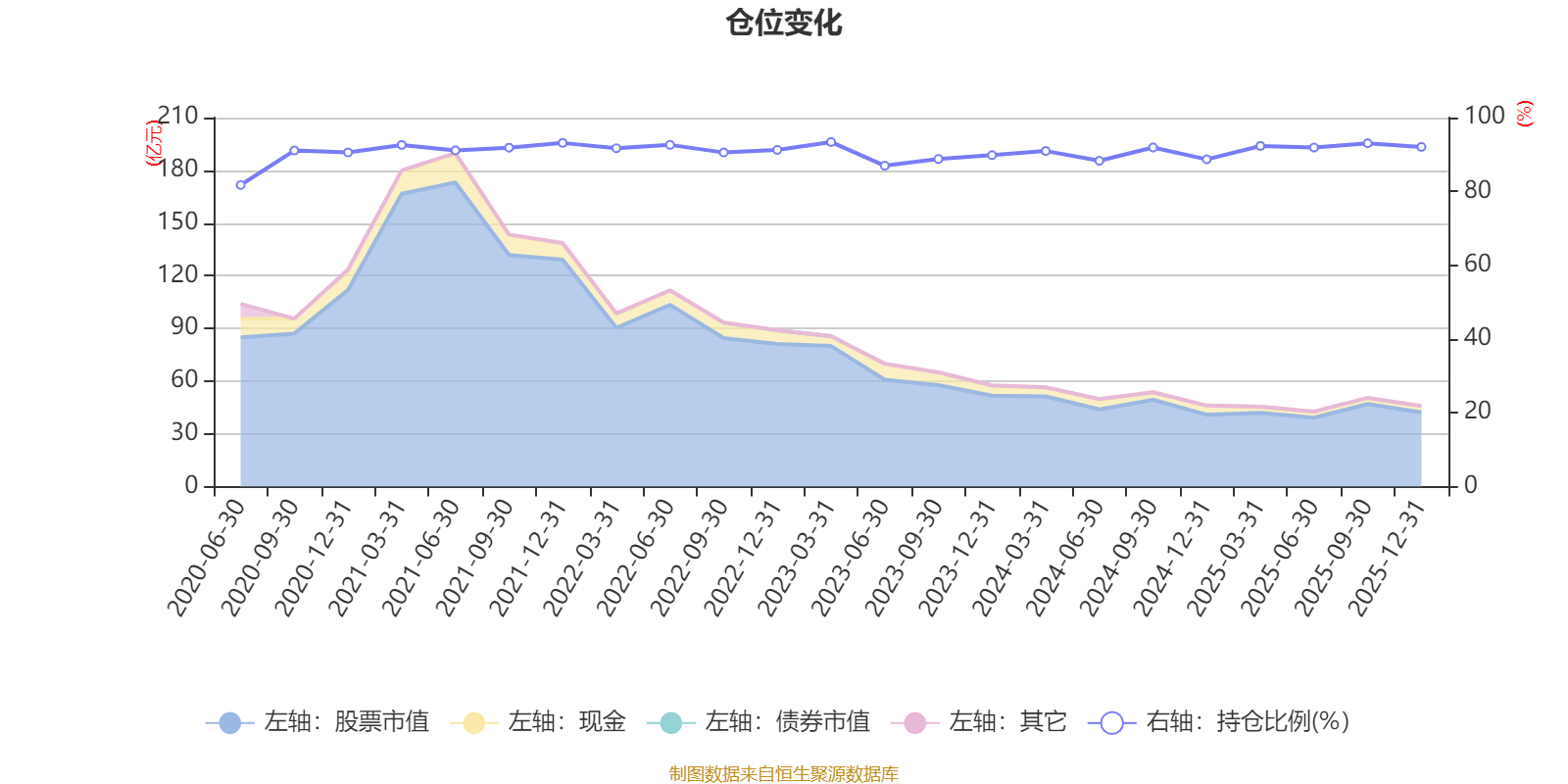 据定期报告数据统计,近三年平均股票仓位为90.67%,同类平均为88.64%。2023年一季度末基金达到93.38%的最高仓位,2020年上半年末最低,为81.73%。