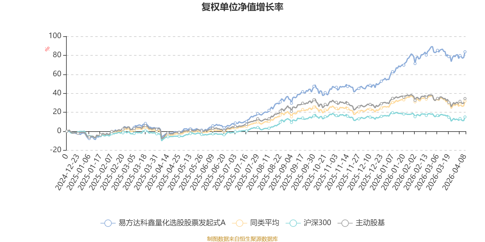 截至4月8日,易方达科鑫量化选股股票发起式A近三个月复权单位净值增长率为13.81%,位于同类可比基金7/121;近半年复权单位净值增长率为24.68%,位于同类可比基金7/121;近一年复权单位净值增长率为93.64%,位于同类可比基金7/120。