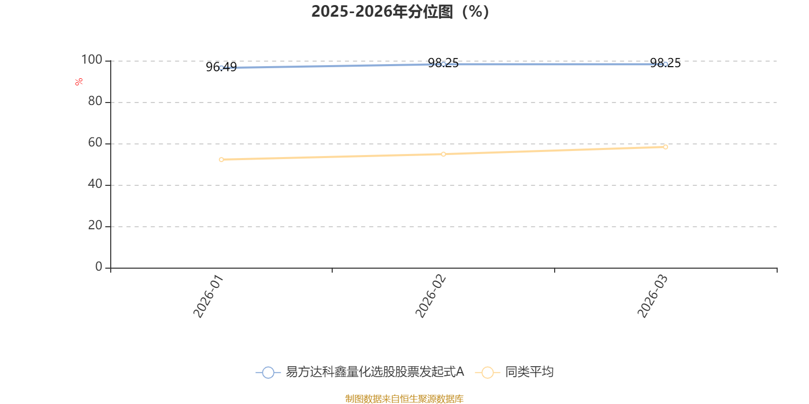 通过所选区间该基金净值增长率分位图,可以观察该基金与同类基金业绩比较情况。图为坐标原点到区间内某时点的净值增长率在同类基金中的分位数。