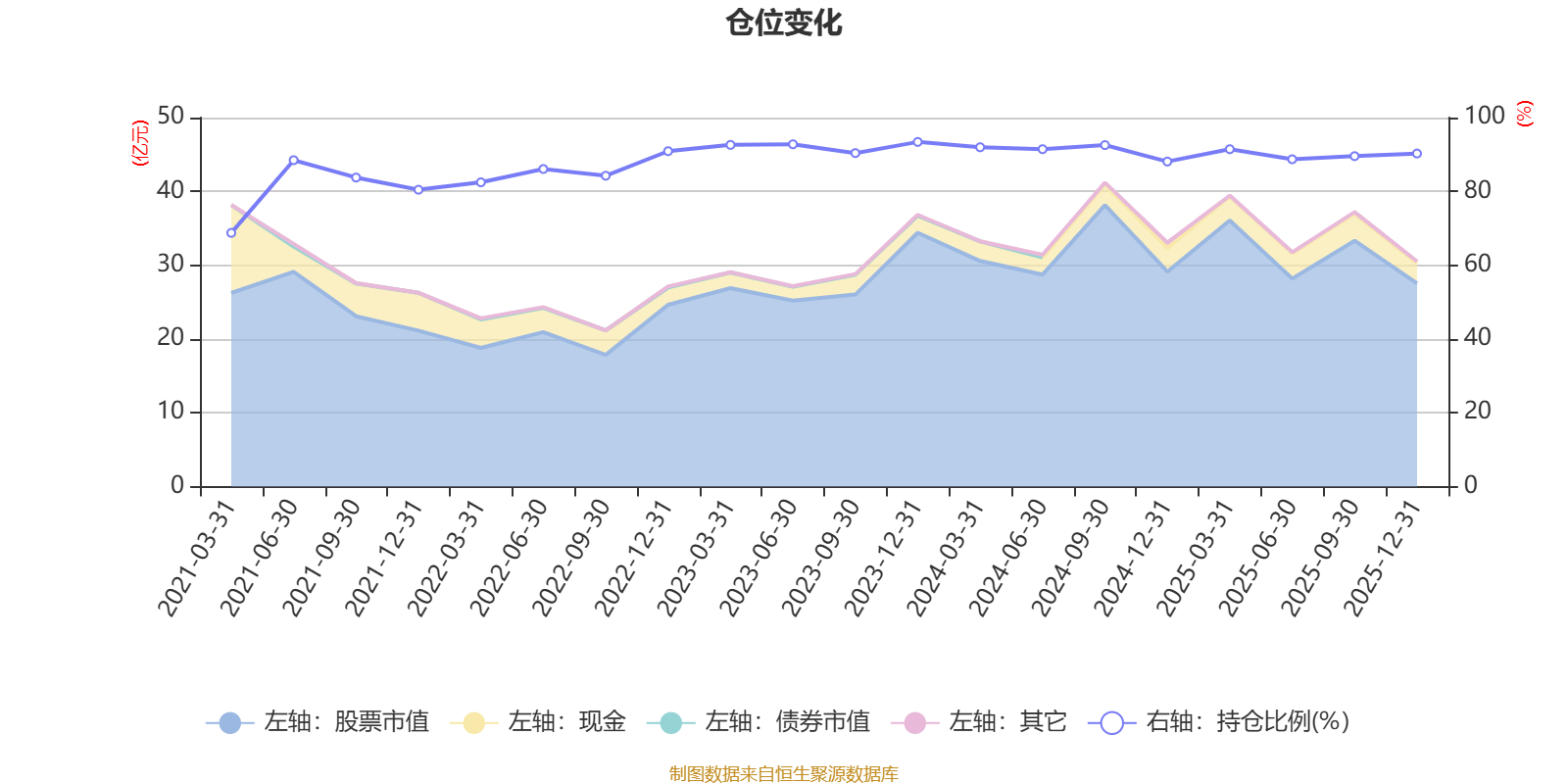据定期报告数据统计,近三年平均股票仓位为91.1%,同类平均为88.23%。2023年末基金达到93.4%的最高仓位,2021年一季度末最低,为68.76%。