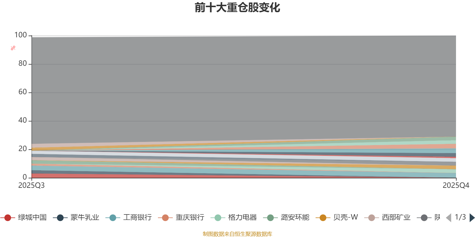 截至2025年末,基金重仓股分别是交通银行、工商银行、晋控煤业、格力电器、渝农商行、陕西煤业、中国神华、贝壳-W、中国石油、上海银行、重庆农村商业银行。