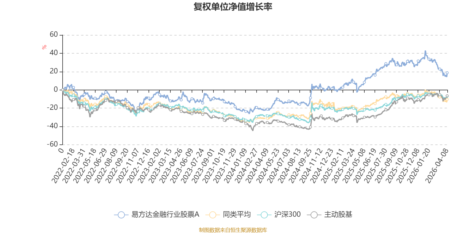 截至4月8日,易方达金融行业股票A近三个月复权单位净值增长率为-13.95%,位于同类可比基金5/6;近半年复权单位净值增长率为-7.98%,位于同类可比基金4/6;近一年复权单位净值增长率为20.73%,位于同类可比基金2/6;近三年复权单位净值增长率为34.42%,位于同类可比基金1/5。