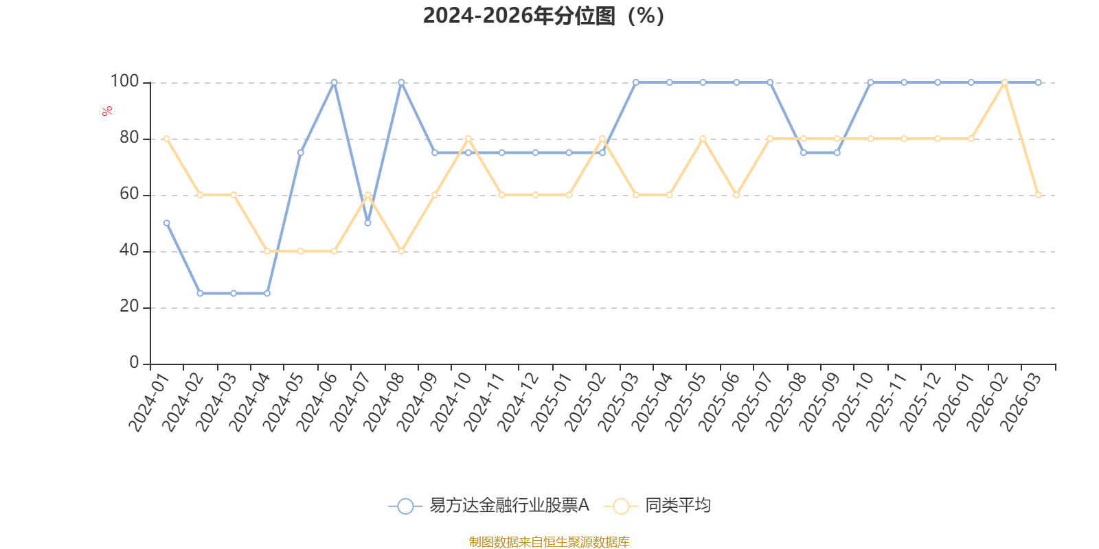 通过所选区间该基金净值增长率分位图,可以观察该基金与同类基金业绩比较情况。图为坐标原点到区间内某时点的净值增长率在同类基金中的分位数。