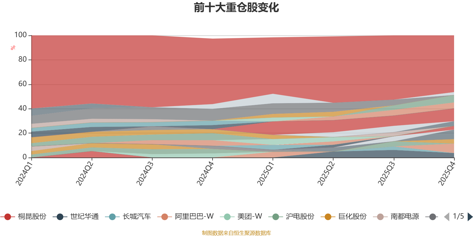 截至2025年末,基金十大重仓股分别是腾讯控股、阿里巴巴-W、东山精密、中际旭创、明阳智能、新易盛、巨化股份、世纪华通、欣旺达、中芯国际。