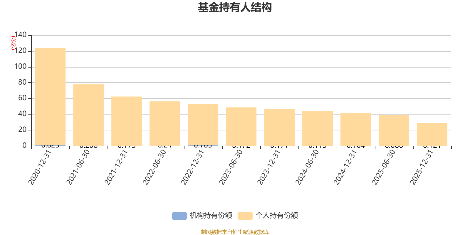 截至2025年12月31日,基金持有人共计5.62万户,合计持有29.11亿份。其中管理人员工持有360.74万份,占比0.12%,机构持有份额占比0.41%,个人投资者占比99.59%。