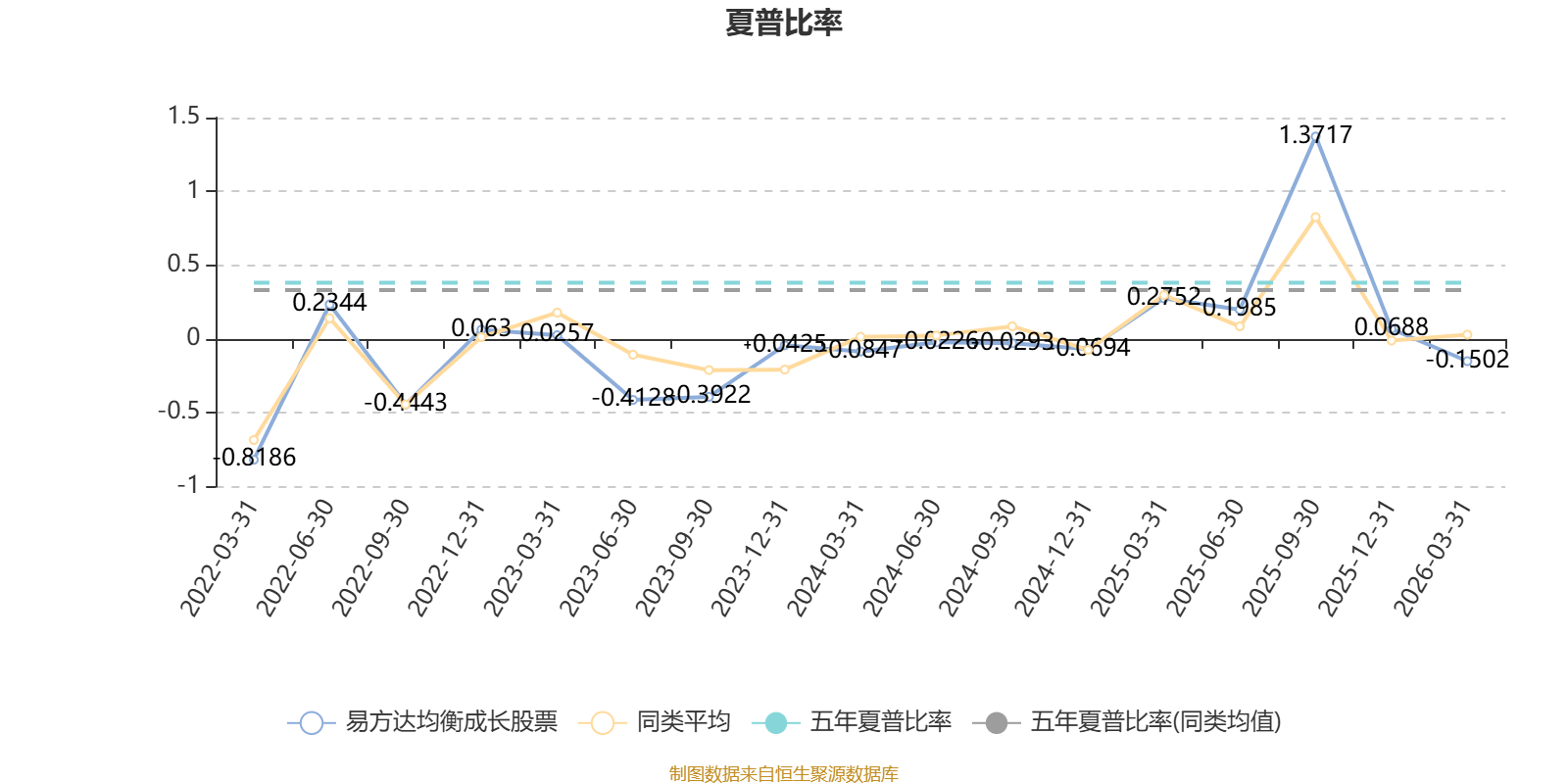 截至3月31日,基金近三年夏普比率为0.6373,位于同类可比基金30/57。