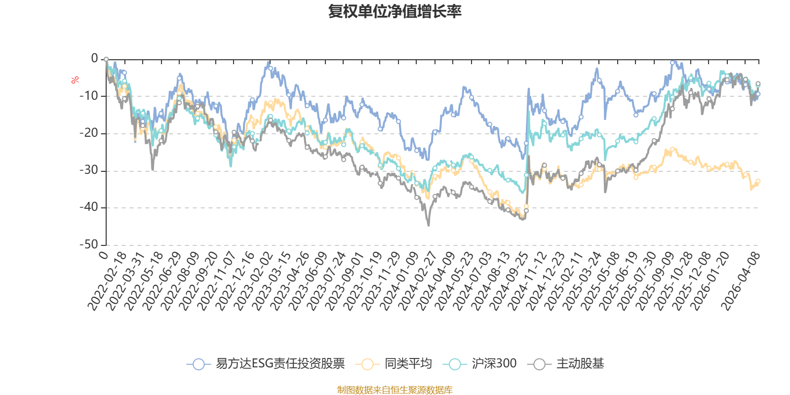 截至4月8日,易方达ESG责任投资股票近三个月复权单位净值增长率为-2.48%,位于同类可比基金8/43;近半年复权单位净值增长率为-8.40%,位于同类可比基金11/43;近一年复权单位净值增长率为5.57%,位于同类可比基金10/43;近三年复权单位净值增长率为-0.90%,位于同类可比基金6/41。