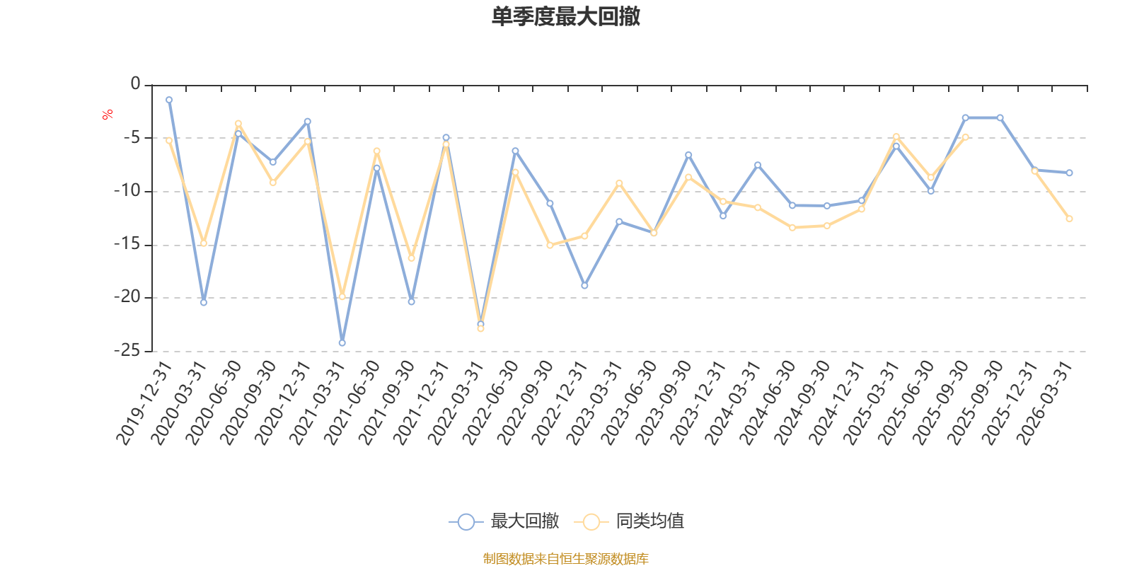 通过所选区间该基金净值增长率分位图,可以观察该基金与同类基金业绩比较情况。图为坐标原点到区间内某时点的净值增长率在同类基金中的分位数。