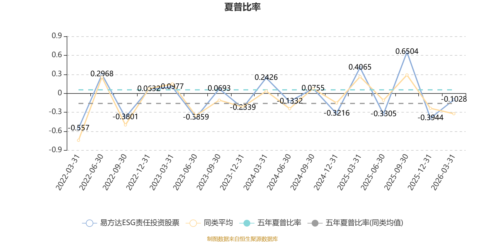 截至3月31日,基金近三年夏普比率为0.2647,位于同类可比基金7/41。