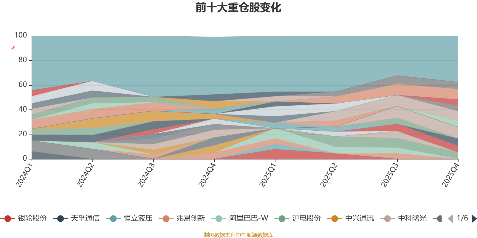该基金持股集中度较高。截至2025年末,基金十大重仓股分别是寒武纪、中际旭创、新易盛、云铝股份、生益科技、沪电股份、德福科技、中孚实业、长芯博创、致尚科技。