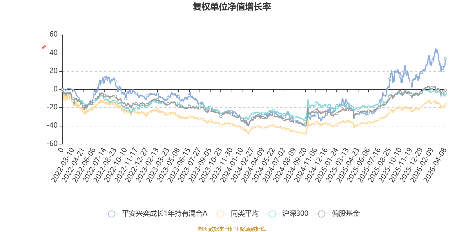 截至4月8日,平安兴奕成长1年持有混合A近三个月复权单位净值增长率为11.56%,位于同类可比基金29/621;近半年复权单位净值增长率为13.27%,位于同类可比基金75/621;近一年复权单位净值增长率为96.86%,位于同类可比基金37/618;近三年复权单位净值增长率为38.06%,位于同类可比基金123/559。