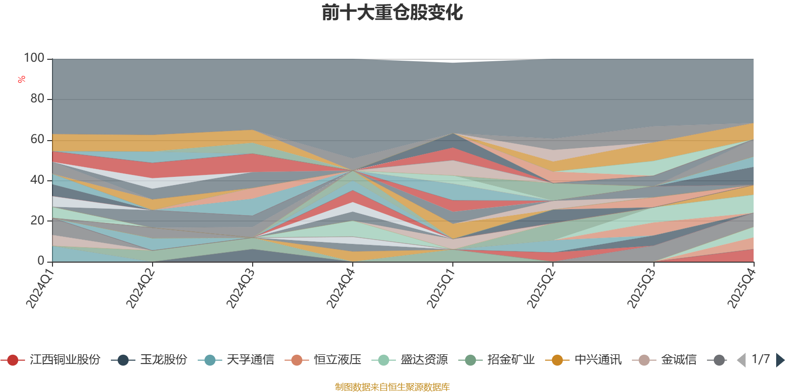 该基金持股集中度较高。截至2025年末,基金十大重仓股分别是寒武纪、新易盛、中际旭创、紫金矿业、洛阳钼业、江西铜业股份、恒立液压、盛达资源、山金国际、藏格矿业。
