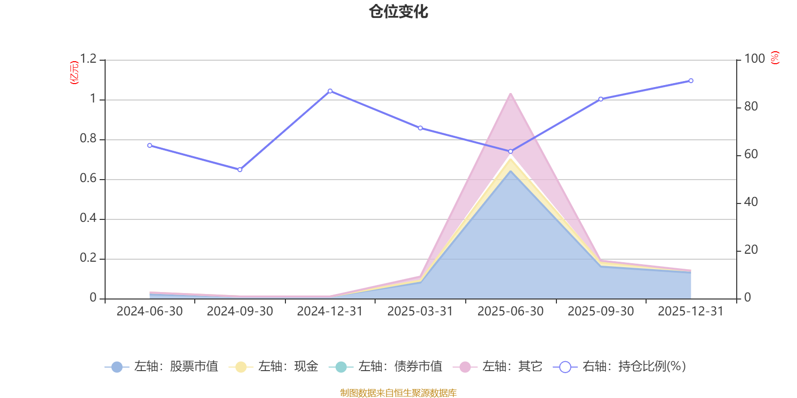 据定期报告数据统计,成立以来平均股票仓位为73.24%,同类平均为87.26%。2025年末基金达到91.21%的最高仓位,2024年三季度末最低,为53.96%。