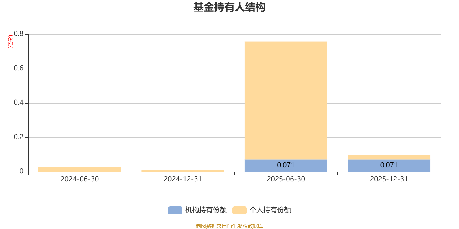 截至2025年12月31日,基金持有人共计229户,合计持有967.89万份。其中管理人员工持有9.32万份,占比0.96%,机构持有份额占比73.53%,个人投资者占比26.47%。