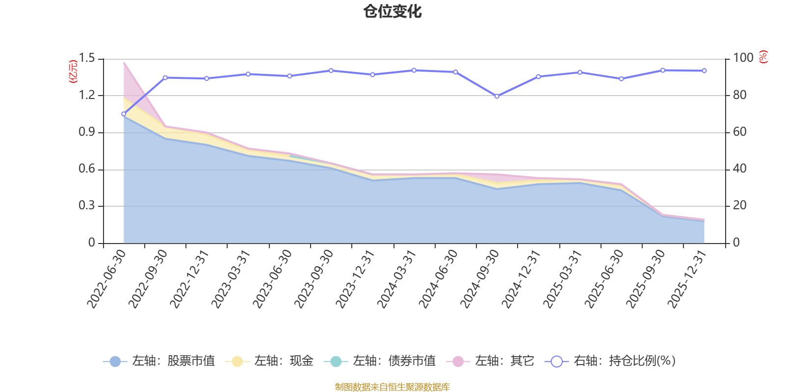 据定期报告数据统计,近三年平均股票仓位为91.11%,同类平均为84.04%。2025年三季度末基金达到93.78%的最高仓位,2022年上半年末最低,为70.15%。