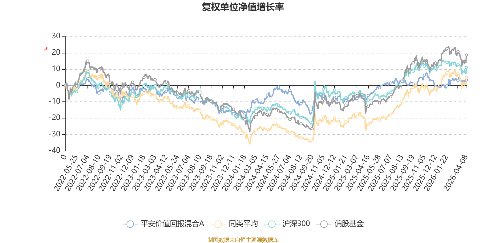 截至4月8日,平安价值回报混合A近三个月复权单位净值增长率为3.07%,位于同类可比基金206/689;近半年复权单位净值增长率为3.69%,位于同类可比基金325/689;近一年复权单位净值增长率为13.63%,位于同类可比基金609/685;近三年复权单位净值增长率为6.83%,位于同类可比基金244/417。