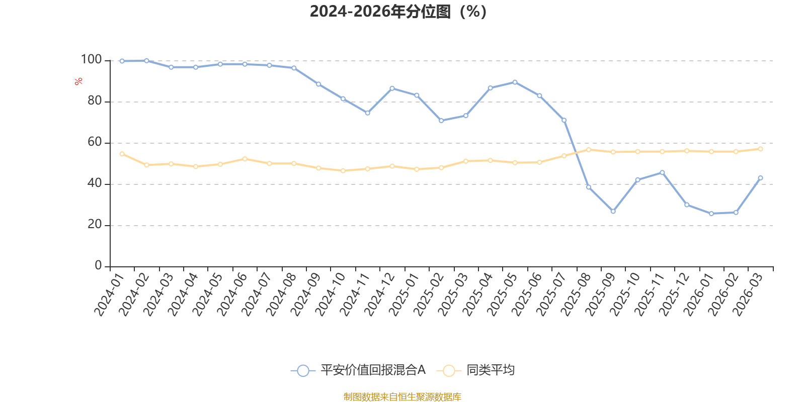 通过所选区间该基金净值增长率分位图,可以观察该基金与同类基金业绩比较情况。图为坐标原点到区间内某时点的净值增长率在同类基金中的分位数。