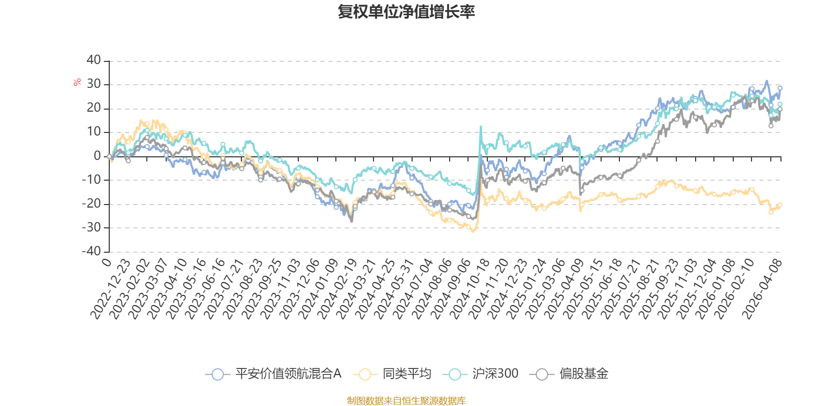 截至4月8日,平安价值领航混合A近三个月复权单位净值增长率为6.62%,位于同类可比基金2/85;近半年复权单位净值增长率为4.09%,位于同类可比基金3/85;近一年复权单位净值增长率为37.18%,位于同类可比基金1/85;近三年复权单位净值增长率为30.42%,位于同类可比基金1/76。