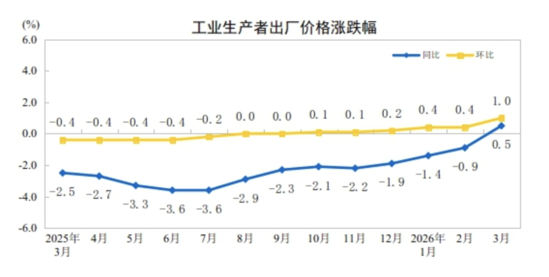 “3月份,全国PPI同比由上月下降0.9%转为上涨0.5%,为连续下降41个月后首次上涨。”董莉娟表示。