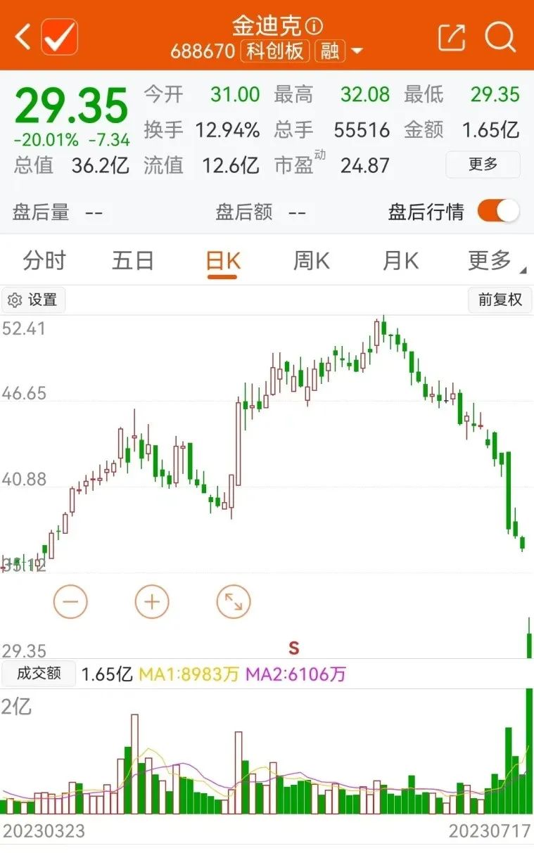 金迪克遭遇20%幅度跌停