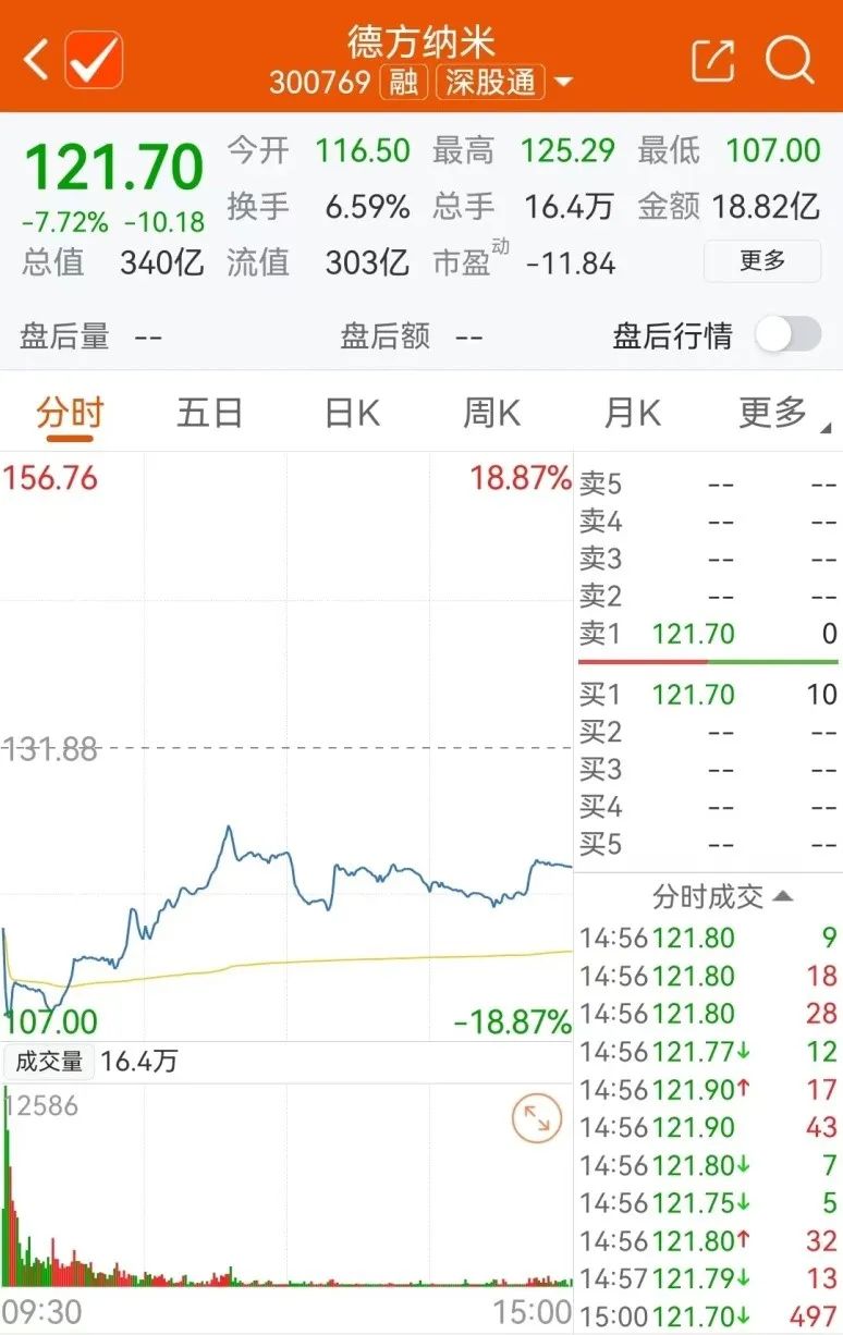 德方纳米股价走势