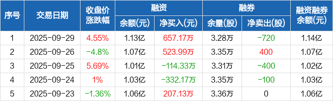 飞南资源:融资净买入657.17万元,融资余额1.13亿元(09-29)