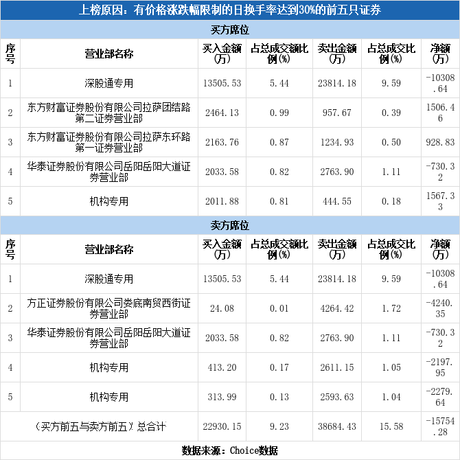 今日龙虎榜单上出现了深股通的身影,占据了买一、卖一的位置,净卖出1.03亿元,占当日成交总额的4.15%。