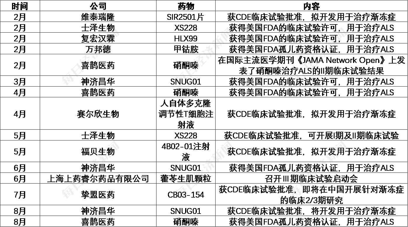 2025年以来,国内渐冻症领域药物研发进展(未纳入IIT研究)每经记者根据公开资料制图
