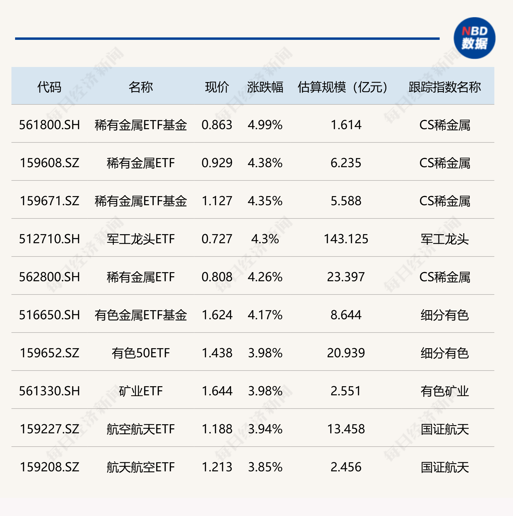 ETF涨跌幅方面,稀有金属ETF涨超4%。