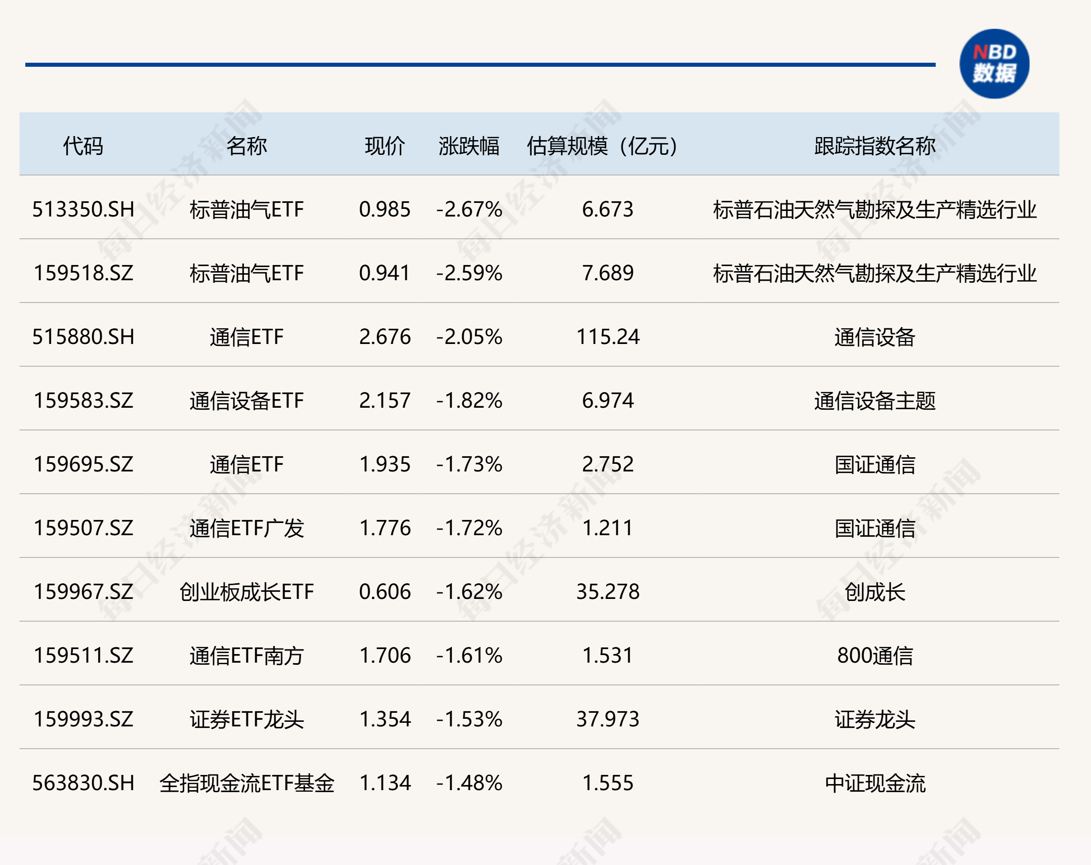 ETF今日收评 | 稀有金属ETF涨超4% 标普油气ETF跌超2%