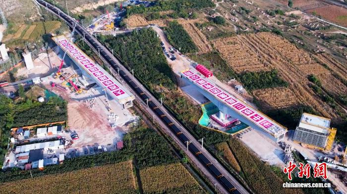 图为雄忻高铁同河特大桥转体后。安进军摄