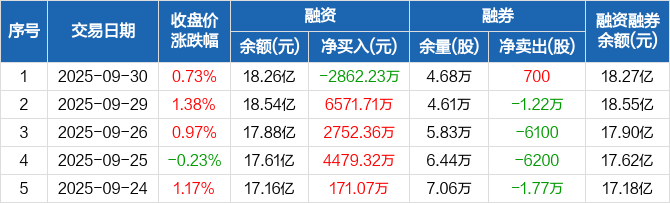 中国动力:融资净偿还2862.23万元,融资余额18.26亿元(09-30)