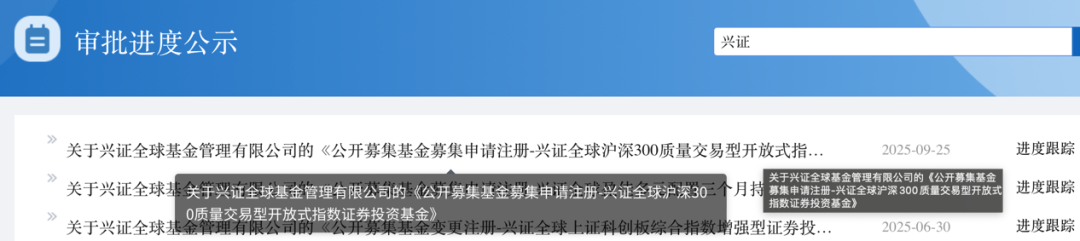 证监会网站信息显示,9月25日,兴证全球基金上报了一只名为“兴证全球沪深300质量ETF”的基金。如果该ETF获批,成立22年的兴证全球基金将迎来首只ETF产品。