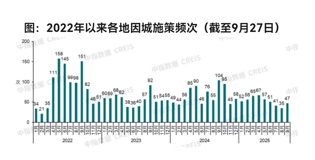 据中指研究院最新数据,2025年以来(截至9月27日),全国约200省市(县)出台政策超470条。因当前多数城市已放开限制性政策,新政频次有所放缓,三季度出台政策超120条,较二季度的175条有所降低。
