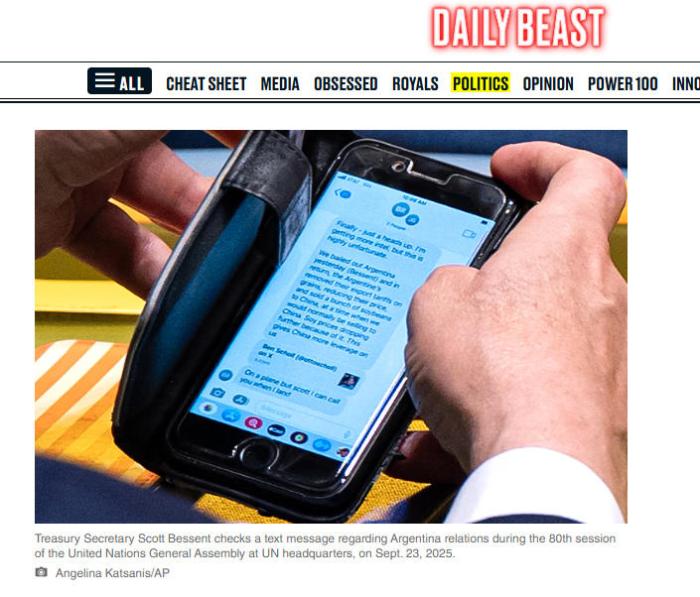 中新网10月1日电据美国福布斯、《每日野兽》网站29日消息,联合国大会期间,美国财政部长贝森特被拍到收到数则短信,内容为美国计划救助阿根廷,阿根廷却取消了谷物等商品的出口预扣税,并向中国出售大量大豆,导致大豆价格继续下跌,且让中国对美“拥有更大筹码”。