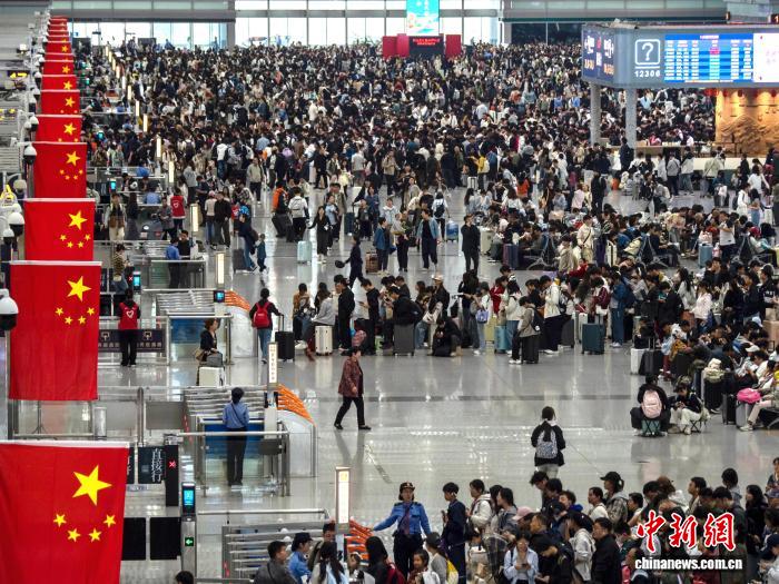 10月1日,陕西西安北站内人头攒动。当日,西安铁路部门迎来假期客流高峰,当天预计发送旅客83.5万人次,同比增长9.6%。刘盼利摄