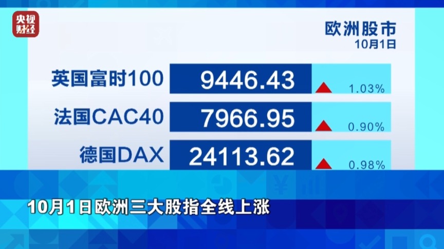 10月1日欧洲三大股指全线上涨