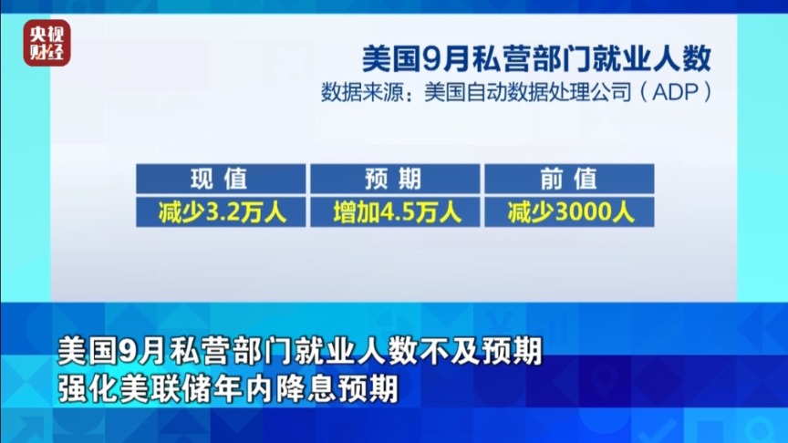 美国9月私营部门就业人数不及预期强化美联储年内降息预期