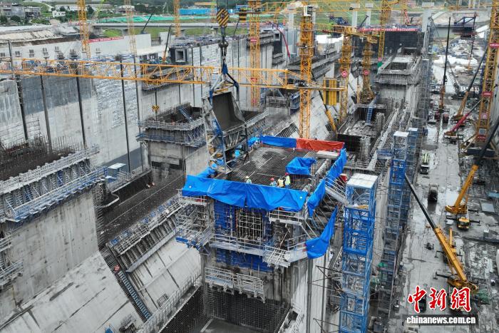 中新网钦州10月2日电 平陆运河集团2日介绍,平陆运河马道枢纽首个船闸闸室中墩近日顺利封顶,标志着船闸主体混凝土结构施工进入最后冲刺阶段。