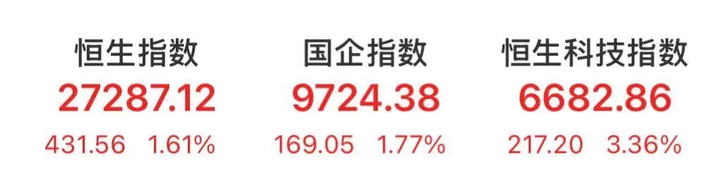 继昨夜美股标普500再创历史新高之后,港股10月2日迎来10月第一个交易日,恒生指数大涨1.61%,突破27000点,收报27287.12点;恒生科技指数大涨3.36%,收报6682.86点。