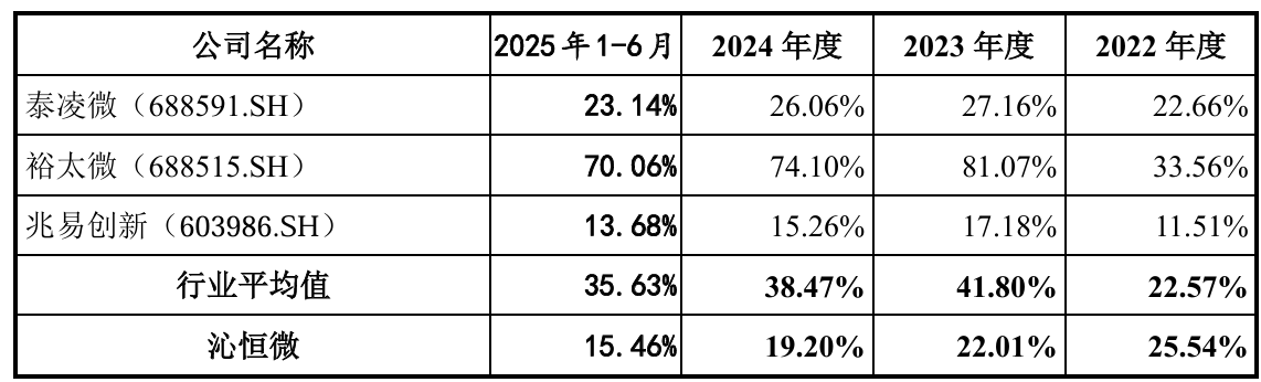 沁恒微解释称,2023年至2025年1-6月,公司研发费用率低于同行业平均水平,主要原因为裕太微与公司及同行业其他公司存在较大偏离,剔除其研发费用率后,行业平均研发费用率为22.17%、20.66%和18.41%,公司研发费用率与行业平均水平相近。